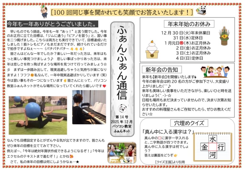 ふぁんふぁん通信14号 2025 12/31 ふぁんふぁん通信 2025年12月25日2025年12月31日 PDF版はこちら ふぁんふぁん通信 よかったらシェアしてね! URLをコピーしました! URLをコピーしました! ふぁんふぁん通信13号 関連記事 ふぁんふぁん通信13号 2025年8月9日 ふぁんふぁん通信12号 2025年3月10日 ふぁんふぁん通信11号 2025年2月25日 ふぁんふぁん通信10号 2025年1月10日 ふぁんふぁん通信9号 2024年12月9日 ふぁんふぁん通信9号 2024年10月3日 ふぁんふぁん通信8号 2024年9月30日 ふぁんふぁん通信5号 2024年8月11日